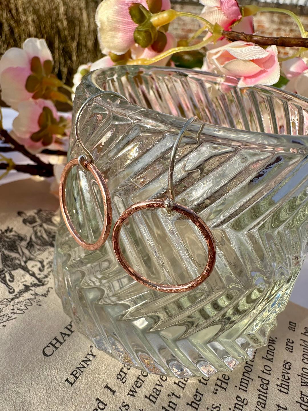 'Ember Hoops' Hammer textured copper circle hanging earrings