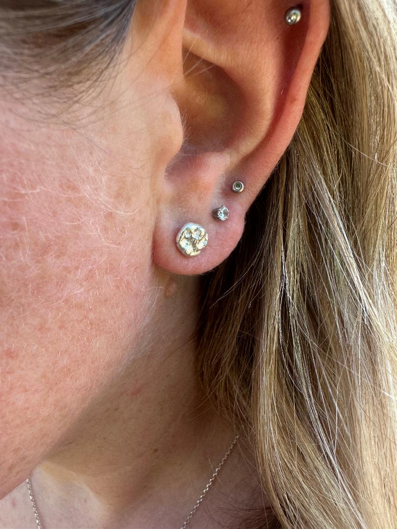 Get ready to make a statement with these unique molten sterling silver studs! Each pair is completely one-of-a-kind, adding a touch of individuality to your style.